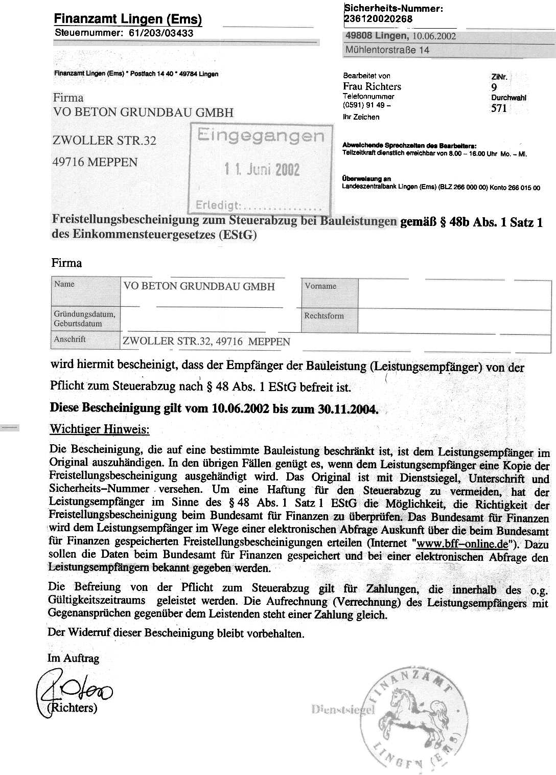 zum Steuerabzug bei Bauleistungen gemäß § 48b Abs.1