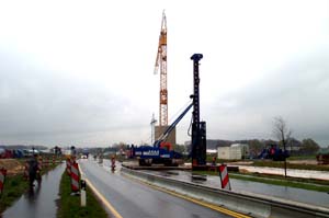 und schienenbegleitende Lärmschutzwände auf Pfähle gestellt.
